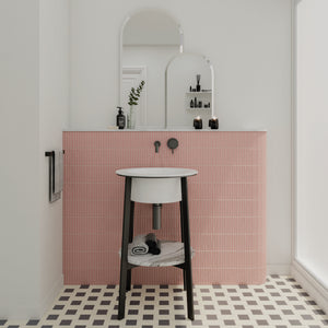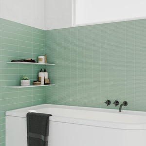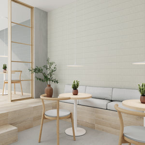 SLASH is a chic collection of linear tile available in 23 different colors. Linear deco tiles are excellent at creating intricate designs and adding depth and texture to rooms. SLASH is a love letter to some of our other collections, offering matching colors for MERIBA, DECADE, PEMBROOKE, and TAZA. This tile is available in a 5x10 ceramic tile and 4.6x4.6 porcelain tile.