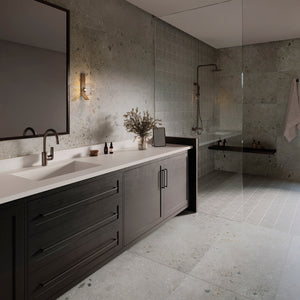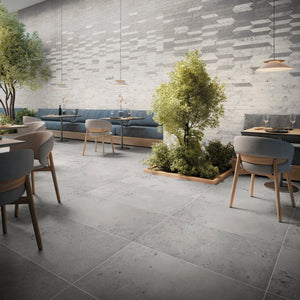 Inspired by the sleek lines and raw beauty of contemporary urban architecture, STRAND concrete-look porcelain tile embodies modernity, sophistication, and practicality. With its handcrafted concrete look and feel, our collection captures the essence of the cosmopolitan urbanite. STRAND translates the dynamic energy of city life into a tangible, artistic medium. This glazed porcelain comes in four colors: White, Ash, Clay and Coal. This porcelain tile is an excellent choice for both residential and commercial floors and walls, and contains several matching porcelain mosaic options. Abundant in texture, STRAND will ensure that the last thing your space is stranded from is character.