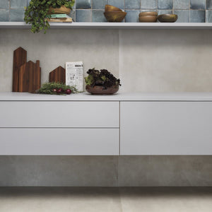 Concrete is always modern and transitions between many styles without being dated or seeming old-fashioned. It is the perfect companion to a mix of other surfaces and can be the lead in solo projects. SUNDERLAND was created from this free perspective.