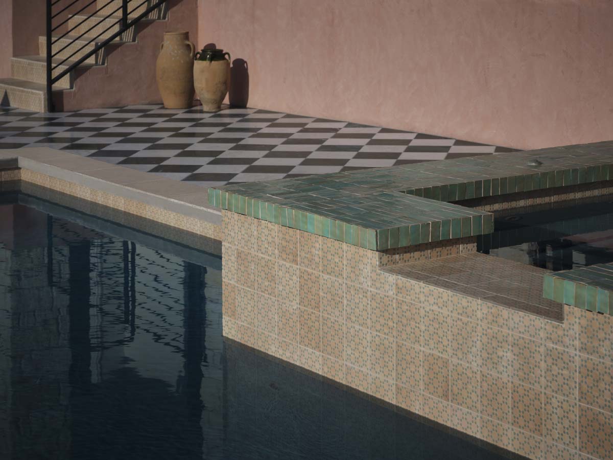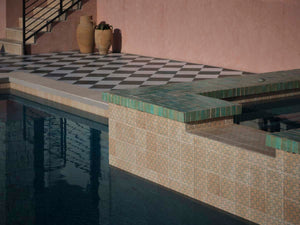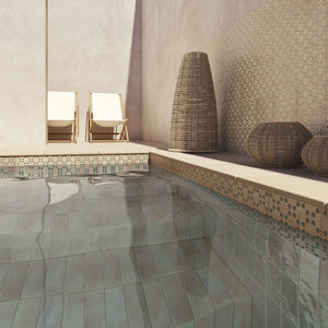 Our TAZA porcelain collection enriches traditional Moorish tile with a vibrant palette of nine colors, six decorative pieces, and two shapes to dress in outdoor and indoor spaces. Taza pairs excellently with TANGIER, a Zellige tile packed with character.