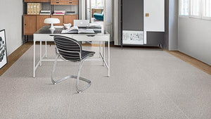 TERRAZZO CHROME offers a dappled terrazzo pattern for floor applications.