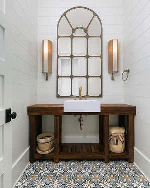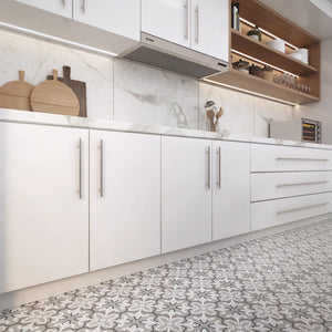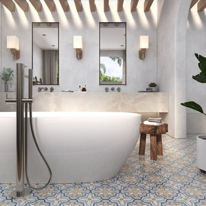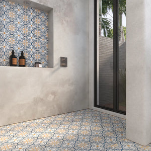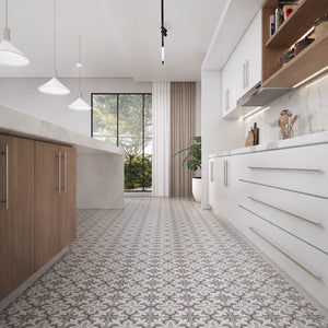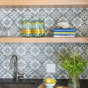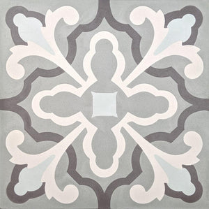 FLORENCE is a hydraulic pressed, handmade cement tile with a color layer of 1/8” thickness adhered to body of the tile using 1800 PSI. Composed of port- land cement, marble dust, and mineral pigments. Both beautiful & elaborate, our FLORENCE collection is a design masterpiece with a hint of decorative lace detailing. FLORENCE must be sealed with DryTreat Sealer.