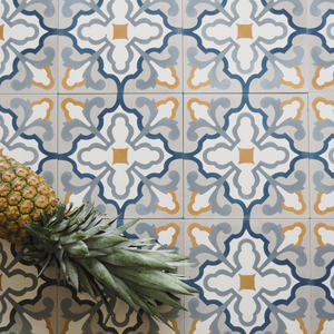 Please note, bright colors like blues and reds can be prone to fading if installed under direct sunlight. Cement tiles must be cleaned with a non-abrasive, pH neutral cleaning product. Highly acidic cleaning products will cause damage to cement tiles and should be strictly avoided. Avoid using mops or chemicals with abrasive grit, as this could damage the tiles. Avoid using bleach to clean tiles, as this removes the sealer and exposes tiles to staining. Sweeping or mopping tiles regularly will help ensure the durability of cement tiles. Depending on foot traffic, periodic resealing may be necessary. Scratches can be removed using 220 grit sandpaper. Please see the end of the brochure for additional information.